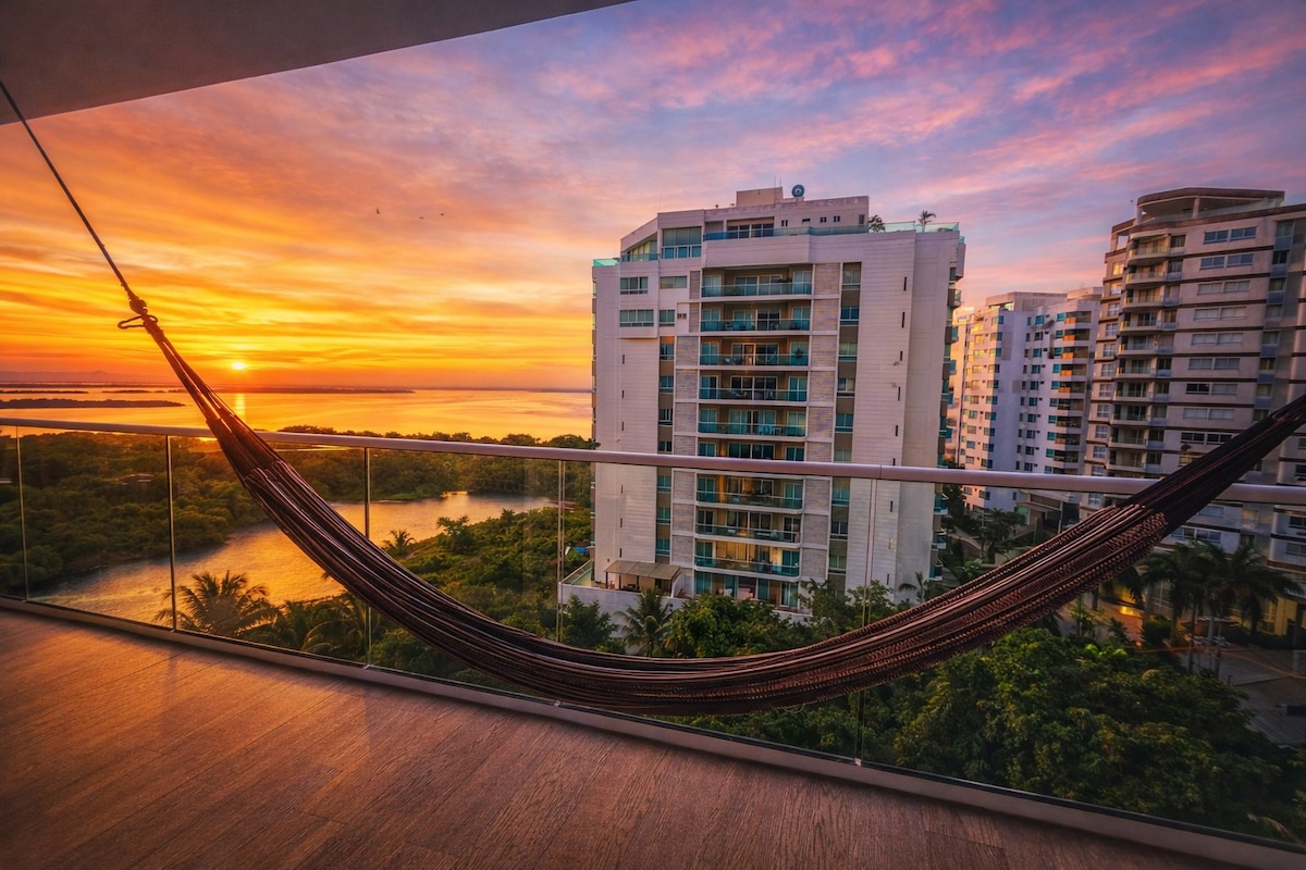 Espectacular Apartamento con vista al mar y a la cienega. Ideal para familia y parejas. Podrás disfrutar de la playa, bellos encuentros en el balcón y las piscinas. Cuenta con todo lo necesario para una estancia inolvidable. A tan solo 5 min del aeropuerto y 15 min del centro historico de la ciudad, con muchas opciones de transporte. La hermosa vista desde el balcón es todo lo que necesitas, quedarás muy feliz y tendrás la mejor de las experiencias!!