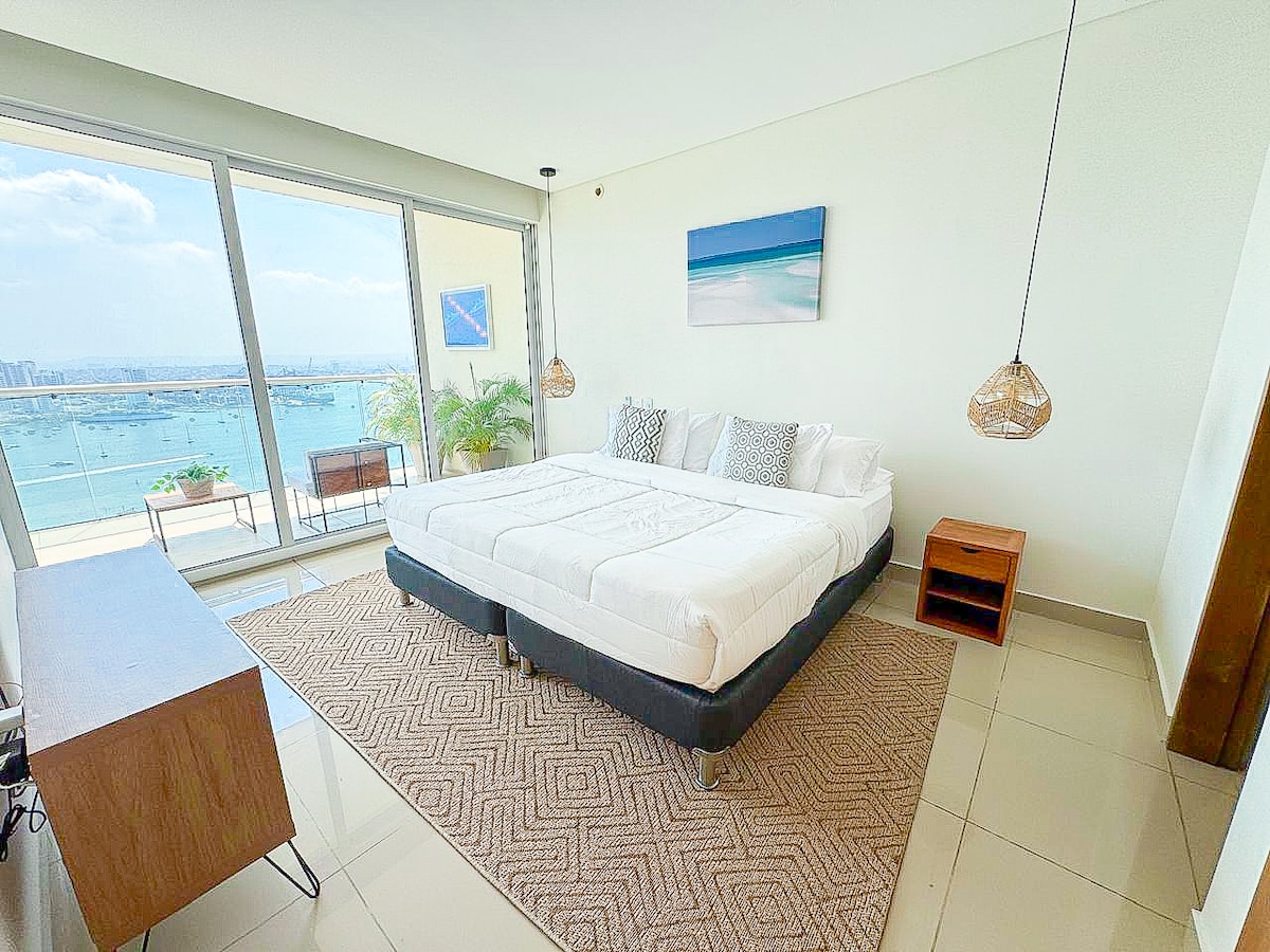 -Beautiful seaview and walled city view -Fully equipped -100% safe -Bedroom + living room + balcony -Bathrooms with showers (hot water) -A/C in every room -WiFi -TV 4K -Swimming Pool and Jacuzzi -Washing Machine -Direct access to the beach -24/7 security -If you know nothing about Cartagena, let me guide you !