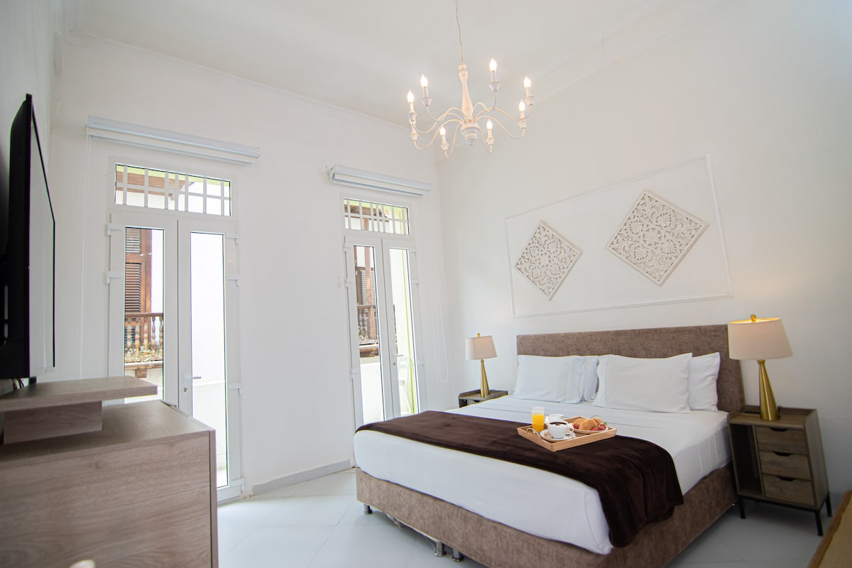 Experience Cartagena Historic Center from this colonial loft with a private balcony in an impressive republican style building. The balcony is the main balcony of the building located directly above the main entrance. Four blocks from the Clock. Perfect for guests who value location, tranquility, and an authentic colonial stay in Cartagena. Located in a prime area of the Historic Center, you will be steps away from restaurants, bars, museums, and cultural landmarks. A refined stay that blends.