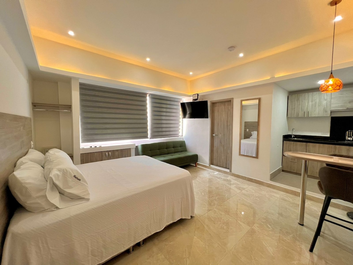 1 BR Loft Suite in the heart of Cartagena inspired by some of the finest 5 star Hotels in the world. Located inside the walls of the old city, within walking distance to shops, entertainment, restaurants, nightclubs and bars. Enjoy staying in this Unesco Heritage town full of history and excitement. Fully equipped kitchen with Washer/Dryer, King Sized Bed, pullout Queen Size Couch, Television, Netflix & 300MbWi-Fi. Our modern beach vibe apartment is perfect for a couple to enjoy and relax.