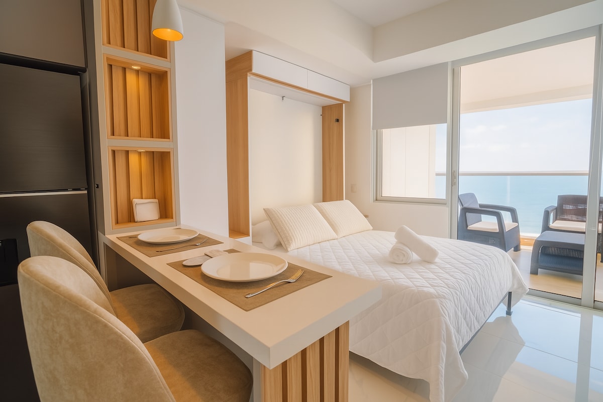 Awesome condo at The Beach Radisson Resort Residences, extraordinary views of the Cienaga, beach and the city; direct hotel beach access to the nicest beaches of Cartagena. 5 minutes to the airport and 10 minutes to the Old city (Wall City) by car . Guest have access to all the Resort amenities like gym, multiple pools, bars, restaurants, spa, sky jacuzzis, wifi, A/C, BBQ areas, 24/7 front desk, security, bellman, room service, etc. Just registered guests are allowed in the apartment