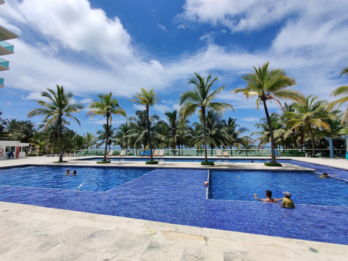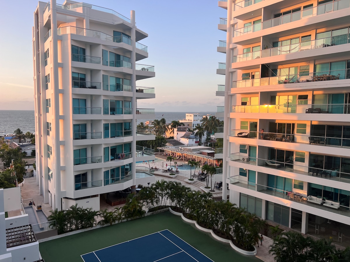 Descubre un paraíso de lujo donde el buen gusto y el confort se fusionan con la magia del Caribe. Ubicado en un condominio al interior del Hotel Sonesta donde tendrás acceso a todas las amenidades del hotel: Restaurantes, Bar, Gimnasio, Cancha de tenis, Jacuzzi, Piscinas de adultos y niños, Spa, supermercado, minimarket 24horas, farmacia y tienda de ropa. Al interior del apartamento disfruta de vistas laterales al mar y a la cienaga, aire acondicionado, tvsqled, agua caliente y servicio de wifi.
