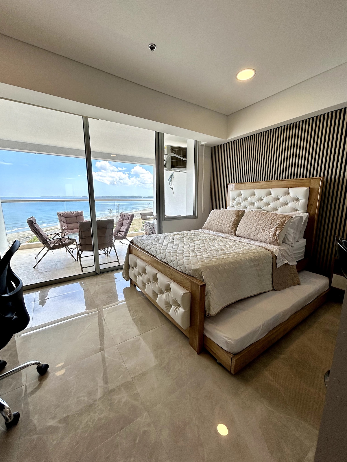 Pasa momentos inolvidables en familia o con amigos en un apartamento nuevo frente a la playa en SEAWAY 935. A 5 minutos del Aeropuerto y del centro histórico de Cartagena, en el sector de mayor proyección turística de la ciudad. Apartamento con capacidad entre 4 y 5 personas. Gran vista, 1 alcoba amplia con 1 cama doble, 1 cama + tarima y 1 amplia sala comedor con 1 sofacama. Unidad residencial con salida directa a la playa, 3 piscinas, restaurante/bar, gimnasio, cancha de tenis y supermercado