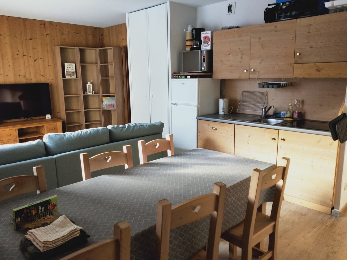 L'appartement est composé d'un hall, d'une SDB + wc, d'une pièce à vivre (cuisine et canapé convertible) ainsi qu'une chambre avec lit parapluie. Pour accéder à celle-ci, il faut passer par la pièce à vivre. Une terrasse située devant l'appartement permet de manger dehors en face de la Meije. Une barrière protège du ravin mais les enfants en bas âge doivent rester sous la surveillance des parents. L’appartement au-dessus est occupé régulièrement par les propriétaires.