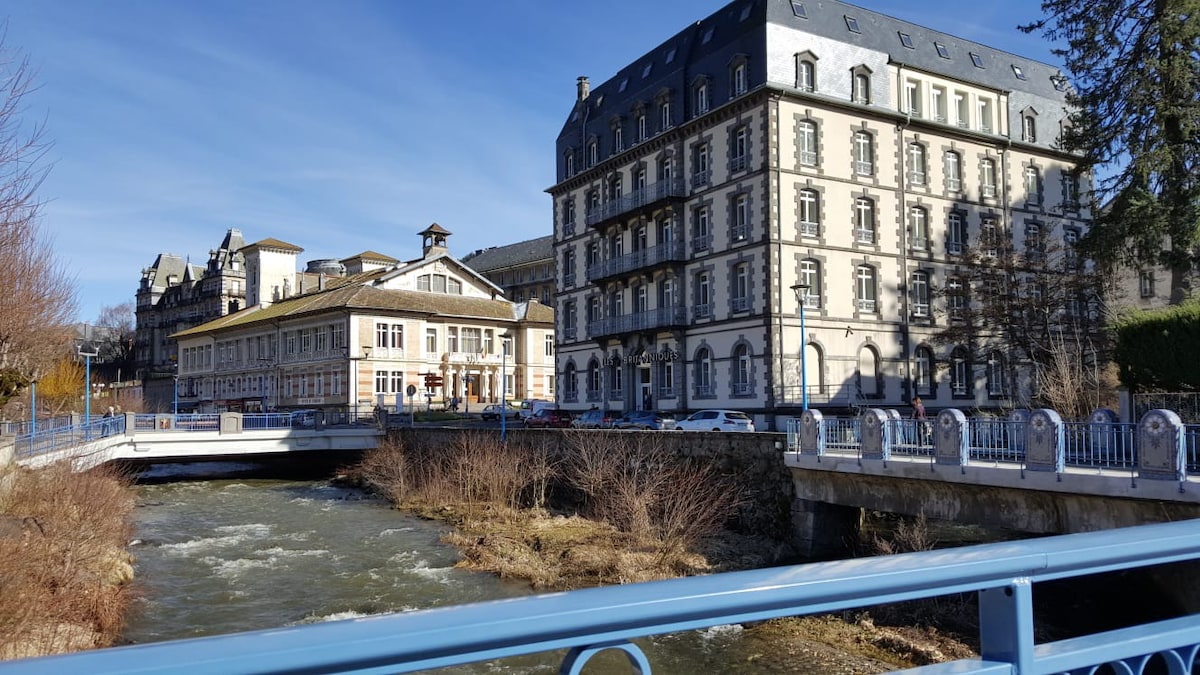 Appt de 49m2 en plein centre ville de la Bourboule, vous trouverez la place principale, les restaurants, les magasins, le casino, les Thermes, le parc fenestre, tout est accessible à pied.... Il y a beaucoup de parcours de randonnées.... En période hivernale une navette vous emmène en bas des pistes du Mont Dore. Il possède une cave pour stocker skis,vélos..... Vous trouverez un service à raclette, cafetière, ventilateur, sèche cheveux.... Il y a de l’espace et très lumineux.