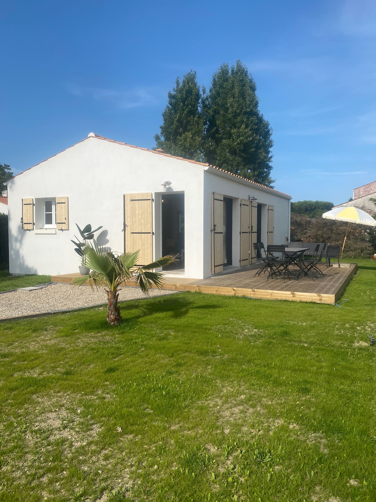 maison de 85m2 colorée fonctionnelle et agréable jardin et parking de 300m2 petit jardin potager (fraisiers framboisiers tomates) plage à 300m à pied restaurants sur le port du Douhet à 800m Marché de la Brée les bains à 1,5 Km (tous les jours du 15 juin au 15 septembre) Nombreuses animations le soir durant l'été Piste cyclable accessible en face de la maison