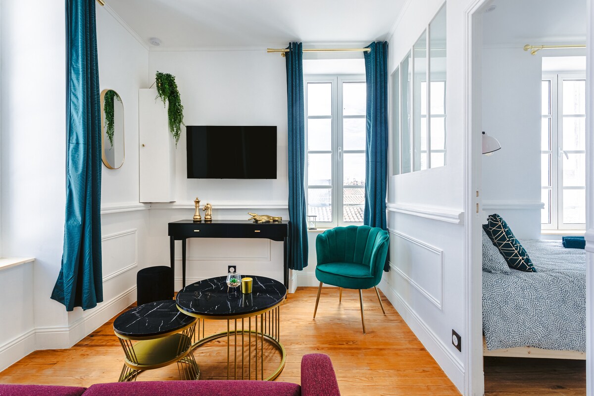 T2 entièrement rénové sur le vieux port au pied des tours. 45 m2 déclinés en une belle pièce de vie avec une cuisine entièrement équipée et pour la partie salon, un canapé confortable pour vous reposer après vos balades iodées. TV et Wifi inclus. Salle de bain avec baignoire indépendante de la chambre. Lave linge et sèche linge sont à votre disposition. WC séparés. Belle chambre avec un lit Queen size, dressing et bureau donnant sur une cour intérieure pour des nuits paisibles.