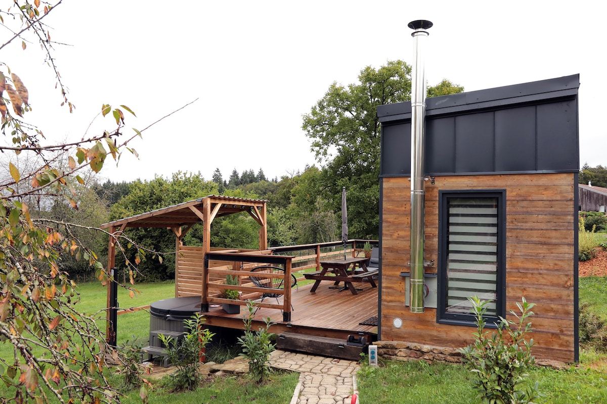 Véritable Tiny House en armature bois avec isolation en métisse (fils de jean), située dans un cadre verdoyant de 4000 m² avec entrée et grand parking privatif. Profitez d’un spa privatif, d’une cuisine d’été avec braséro, d’un kota grill pour vos soirées d’hiver, et désormais d’un sauna tonneau pour une expérience relaxante unique. Possibilité de louer un second logement pour accueillir deux familles. Idéal pour un séjour convivial et apaisant au cœur de la nature.