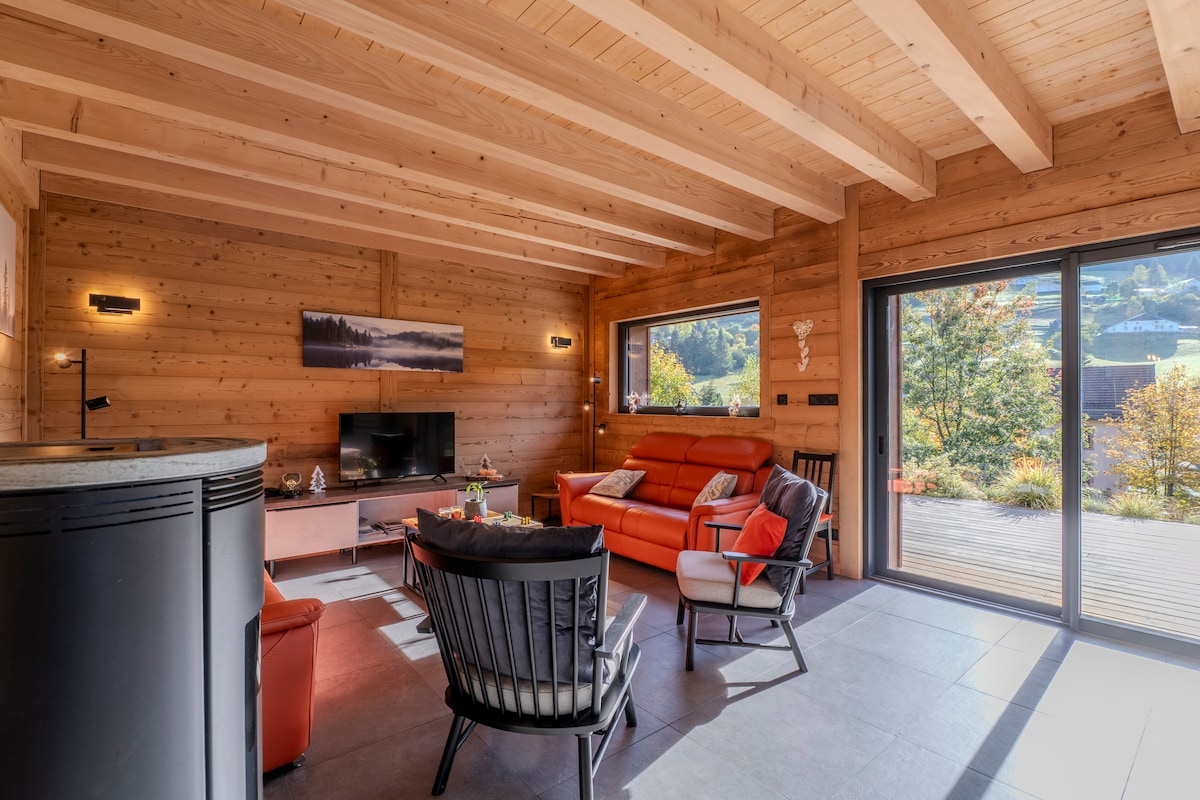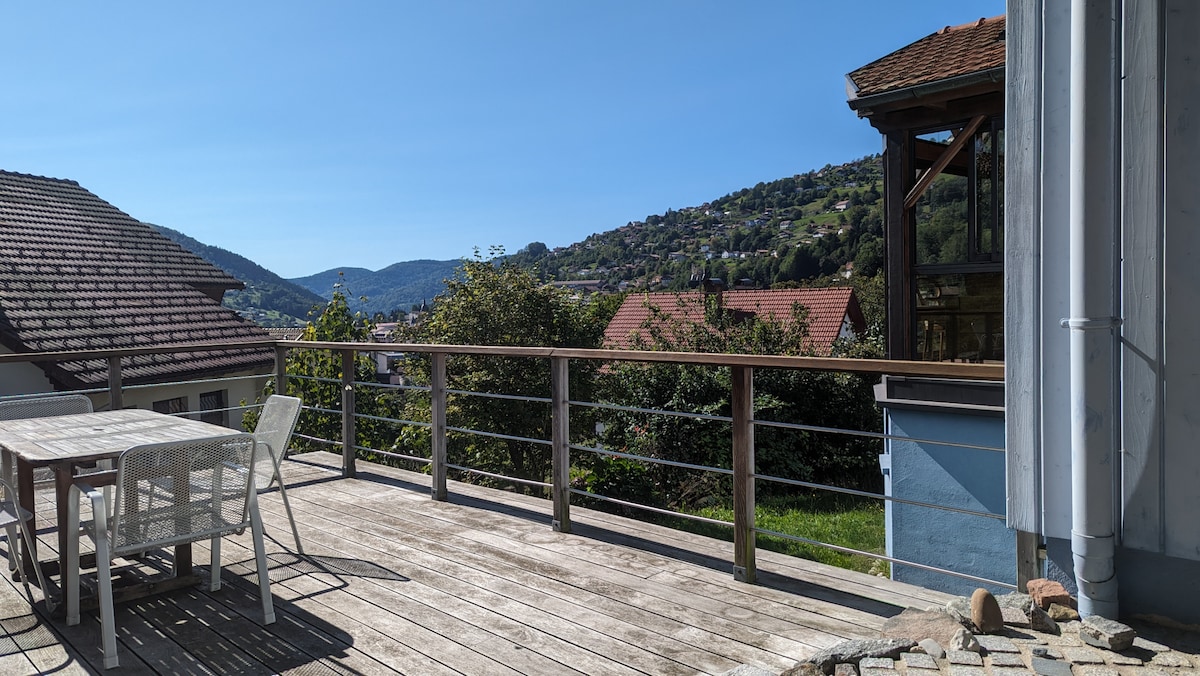 Chalet moderne et cosy au coeur de la montagne Vosgienne. Vue imprenable sur l'ensemble du domaine de ski alpin de Gérardmer et à 100m des pistes de ski de fond. Idéal pour la randonnée. Sur un terrain de 2500m2 vous aimerez la vue et la tranquillité du lieu à 5 minutes du centre ville. Grand salon-séjour, avec poêle à bois, cuisine ouverte tout équipée, avec à l'étage 3 chambres et 1 sdb tout confort. Terrasse plein sud. Parking privé 4 vl, local fermé pour ranger skis, vélos, motos, etc…