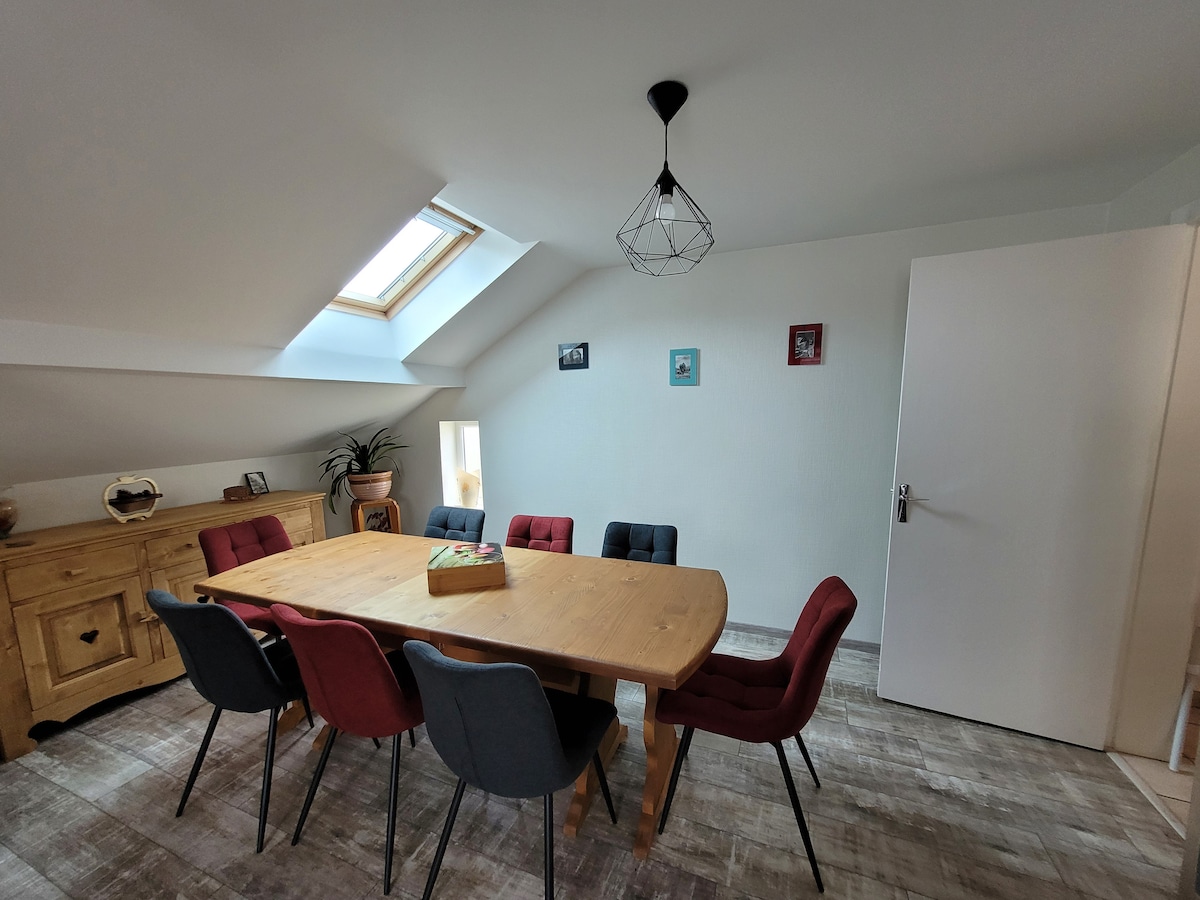 Bienvenue dans notre gîte" Au bout du chemin " havre de paix niché à 800m d'altitude dans la nature Vosgienne, au bout d'un chemin de 300m, loin de toute agitation. Cette ancienne ferme rénovée avec soin vous accueille pour des séjours en famille ou entre amis, dans un endroit paisible et ressourçant. Le logement, d'une surface généreuse peut accueillir jusqu'à 15 personnes, dispose de 6 chambres ( 5 avec lits doubles et un dortoir de 5 lits ) , 3 salles de bain et 4 WC dont 2 individuels.