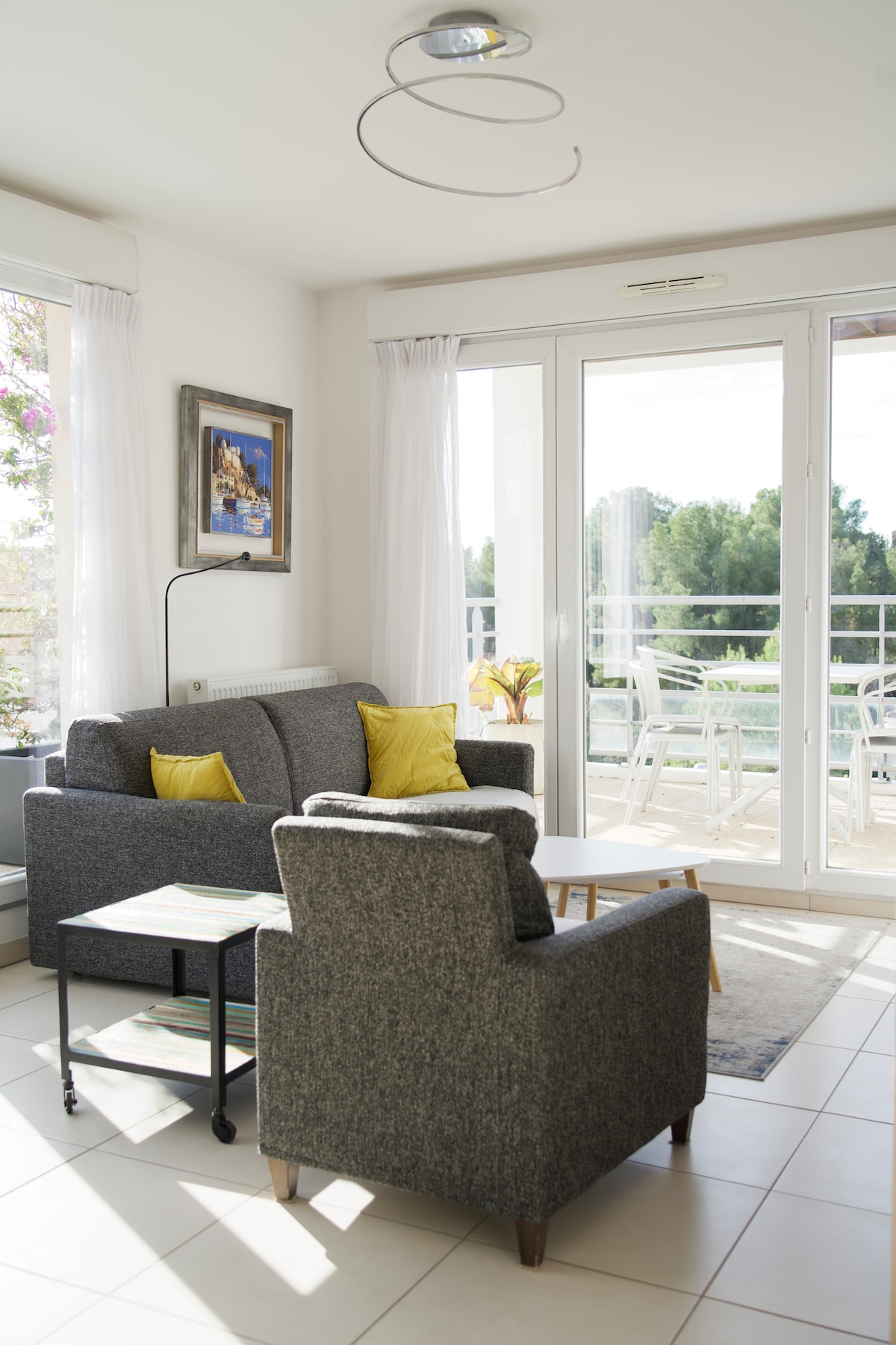 BANDOL - Les Katikias Superbe appartement plein sud, vue mer à 180° (port de Bandol). 70 m2. Terrasse 16 m2. Le séjour et les 2 chambres (1 lit double / 2 lits simples) ont vue mer. Résidence très calme avec belle piscine les 4 mois d'été. On peut se garer juste à coté de la porte d'entrée. Wifi (fibre Free pop). Enceinte connectée et jeux de société à disposition. Piscine vue mer dans la résidence (proche de l'appartement, accessible à pied par escalier).