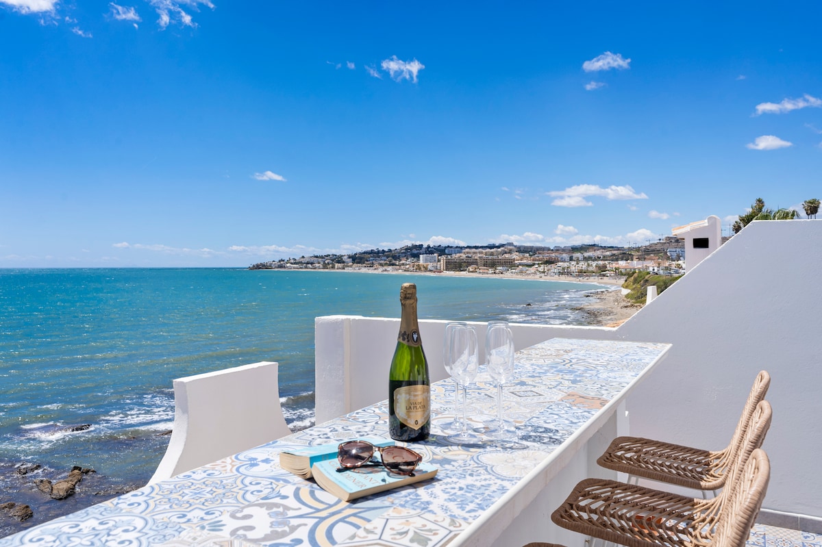 traumhafte, nagelneue geschmackvolle Wohnung mit Blick aufs Meer - Mitten in La Cala de Mijas - komplett neu renoviert & ausgestattet & super gemütlich eingerichtet - Diese Wohnung verbindet das einmalige Flair von Sonne & Meer, Wohlfühlen- Entspannen und " Mitten drin Sein im Geschehen" Eisdielen, Restaurants & kleine Boutiquen alles ist in Fussnähe - Zu den nahgelegenen wunderschönen Golfplätzen bist du in 5 Minuten mit dem Taxi . Sei willkommen und geniesse das schöne La Cala de Mijas.
