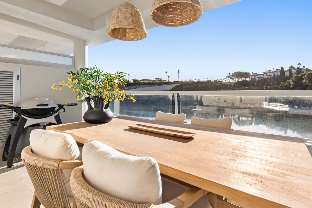 Enjoy panoramic views towards the sea & a beautiful terrace at this new, luxury apartment, in an amazing location - just a few minutes walk to the beach, shops, bars & restaurants! There's a beautiful, large pool with premium bali bed sunloungers. The apartment consists of two spacious bedrooms, two bathrooms, a large living room with modern open plan kitchen. Everything has been thoughtfully prepared and all furnishings are of very high quality. Free parking.
