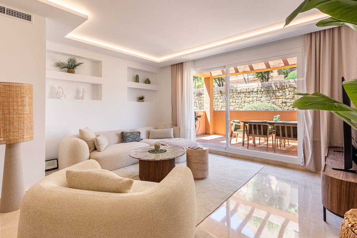 Our new, HIGHend apartment, just 8 minutes from Marbella's center. It offers sea views, creating a tranquil setting for your Spanish holiday. The apartment has Scandinavian elegance w/ clean lines, neutral tones, & minimalist design, creating a bright & sophisticated atmosphere for a memorable stay. Our guest can access the spa w/ heated pool, sauna & gym, all free of charge w/ fantastic sea views. The gym is well-equipped w/ top-line machines & the clubhouse adds a social element to the stay.