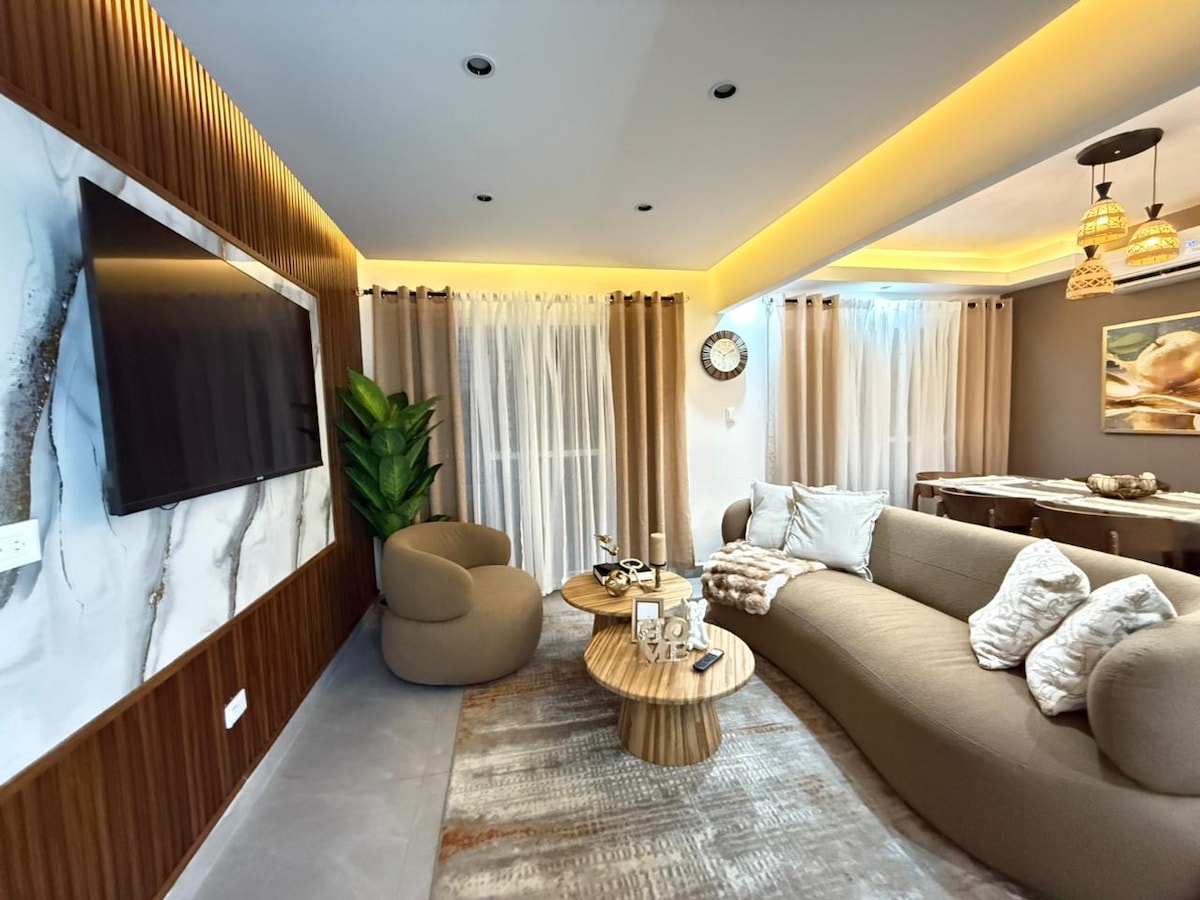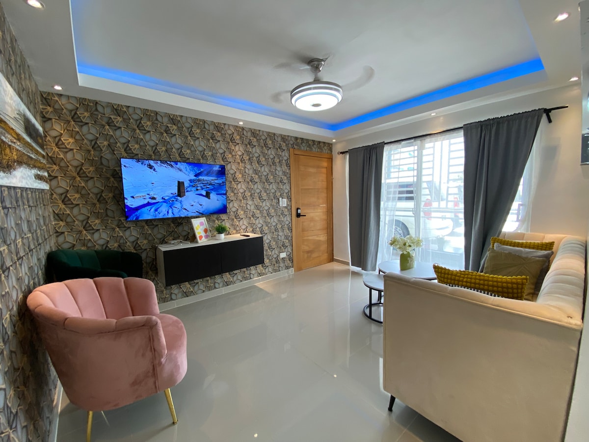 Precioso,claro ,ventilado , bien decorado , y acogedor , con linda piscina “ En la Torre Boca del Mar II “ y para la playa a solo 3 minutos caminando , todo cerca ..supermercado, y el aeropuerto internacional a solo 10 minutos reales , y a 30 minutos de la capital de Sto. Dgo. Quedarás encantado/a. Todo cerca Restaurant, discos, café.. mucha vida y diversión nopturna ..
