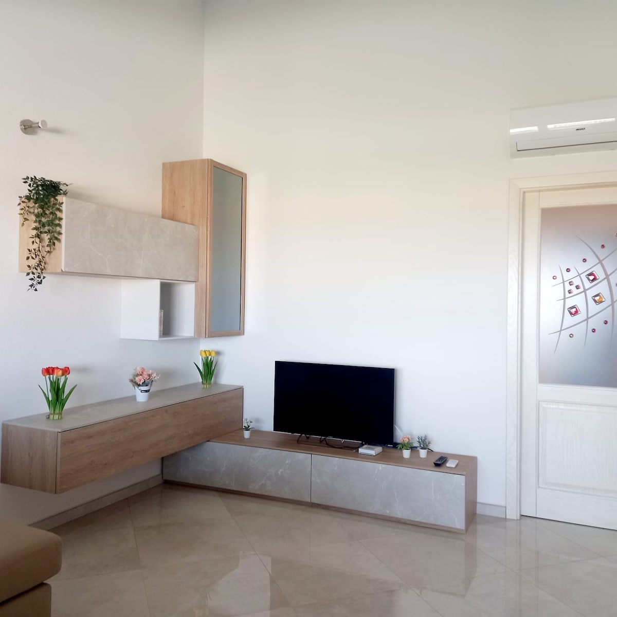Splendida casa di nuova costruzione a 10 minuti a piedi dalla spiaggia La Caletta. L'appartamento dispone di 2 ampie camere matrimoniali con armadi, di cui una con bagno in camera, secondo bagno , sala con angolo cottura con divano letto che all'occorrenza può essere usato. L'appartamento è completamente climatizzato , dotato di connessione wifi, smart Tv, lavatrice, lavastoviglie, ferro da stiro e forno a microonde . Spazio esterno con tavolo per mangiare fuori, gazebo con divanetti e bbq.