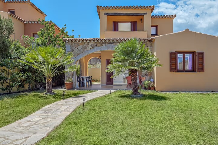 This two Villas are set in Pedra e Cupa , a residential area in Budoni far just 800 mt from city center and 200 mt from the beach , both reachable by feet .Property offer a private parking slot , a garden in front and on the backside and a double Patio : the first in front with dining area and the second on the back with relax area . A fully furnished kitchen is available on the living , completed by Tv and sofa . The offer of property is completed by a double bedroom ( one twin and 1 double ) and a bathroom with shower . Air conditioning , wi-fi connection and washing machine .