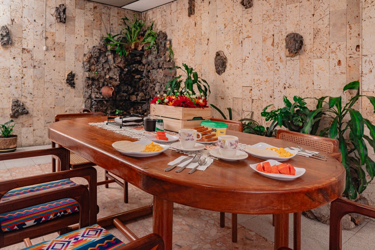 Exclusive “colonial house” immersed in friendly neighborhood in North Bogota. Getaway close to top attractions, excellent restaurants, shops, attractions, and landmarks. Prime location, comforts, rich amenity: ✔4 bedrooms with queen, double and single beds ✔2 fully bathroom + 1WC ✔American Kitchen ✔Private indoor garden + BBQ ✔ High Speed Wi-Fi FREE when you book with us: ✔ Discounts between 30% - 50% in 100+ restaurants ✔ Coffee tasting workshop at home
