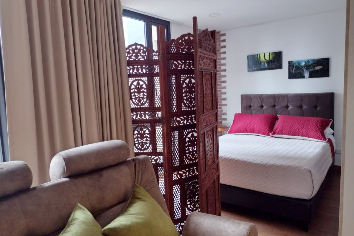 Recently renovated charming Studio. This place is strategically located: close to markets, museums, San Martin Mall, Monserrate, La Candelaria, La Plaza del Perseverancia, la Calle Bonita, National Park International Center (Financial zone), and countless restaurants, bars, and cultural activities that will make your visit to the city, an unforgettable experience. The building has a gym, coworking, pool area, and BBQ terrace on the top floor 360 View.