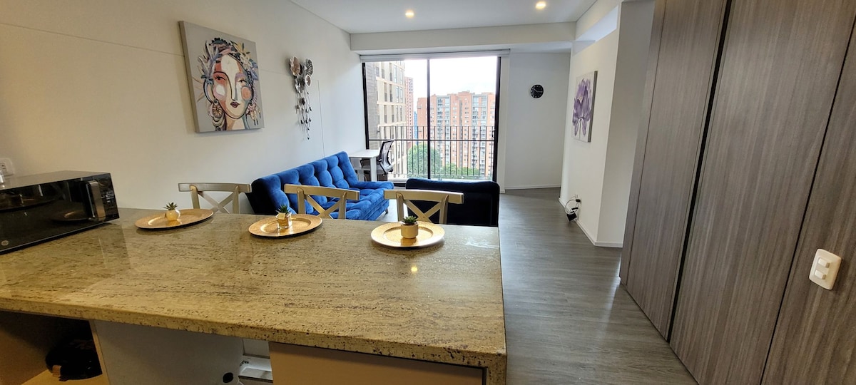 Enjoy a great experience at this centrally-located place. 3 minute walk to national museum, 10 min to downtown, museums and more. Crossing the street San Martín Mall, groceries and markets 24/7 security with security guard and security cameras Near Monserrate, la Candelaria, Zona G, Chapinero, shops and restaurants Wifi high speed internet The building has a gym, coworking, pool area, and BBQ terrace on the top floor 360 View. Parking is available for free for 5 hours!