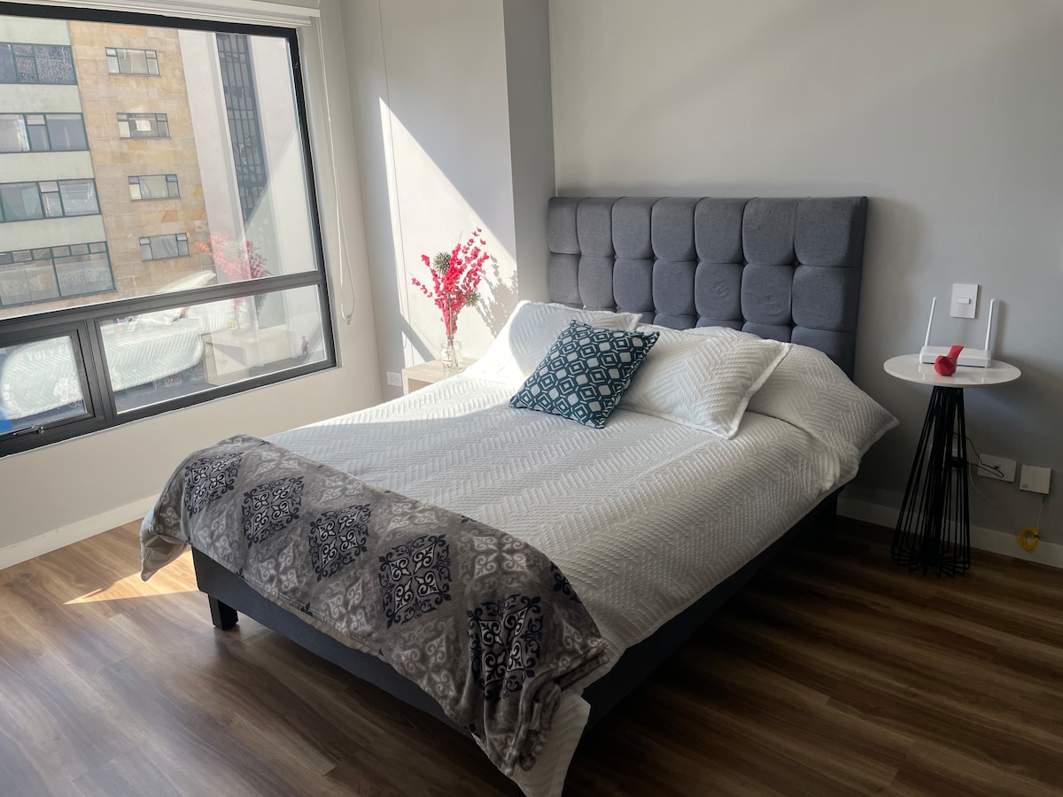 Hermoso apartamento tipo loft ubicado en el Centro Internacional de Bogotá, una de las zonas urbanas, culturales, gastronómicas, arquitectónicas y de negocios más importantes de la ciudad, muy cerca al Centro Histórico y al barrio La Macarena. Con vista espectacular a los icónicos cerros de Bogotá, en un edificio nuevo con piscina, sauna, jacuzzi, gimnasio, mirador con BBQ, sala de reuniones, a solo media cuadra de la Carrera 7.