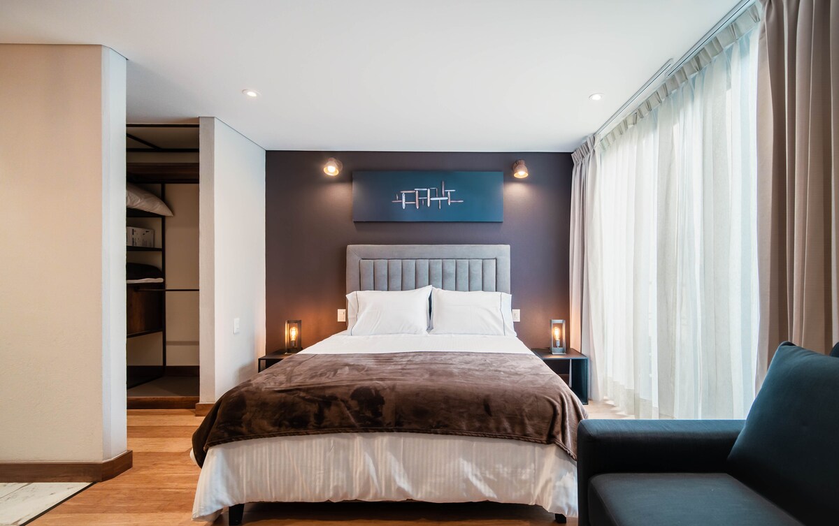 Let yourself be captivated by the serenity of our charming apartment, where the bedroom offers views of a quiet, sunlit street. Featuring a design that seamlessly integrates the living room, kitchen, and dining area into an open and welcoming space, the apartment is known for its warm and bright ambiance. Located just a few meters from the Hilton, JW Marriott, and Four Seasons hotels, in the heart of Quinta Camacho and Zona G, you'll have access to restaurants, cafés, and bars.