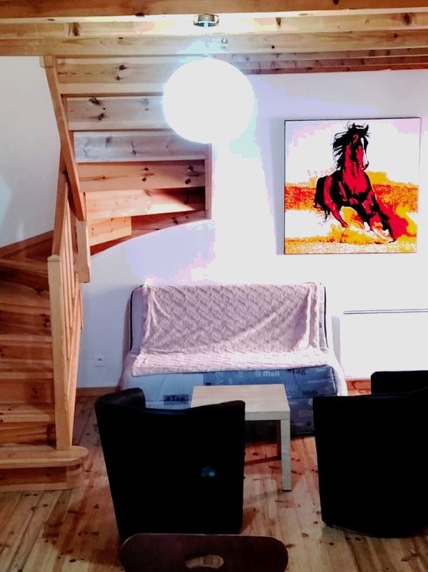 Au cœur du village dans un ancien couvent des 16ème et 18ème siècles un joli duplex cosy de 55m2 vous attend. Situé au 1er et deuxième étage du bâtiment le plus ancien sa grande chambre en mezzanine sous voûte, est idéale pour un couple. Dans la pièce à vivre un lit d'appoint 1 personne peut être rajouté. Salle de douche et WC séparé mais nécessitant de passer par la chambre. Dans la cour intérieure commune vous pourrez vous installer pour lire ou déjeuner (mobilier extérieur).