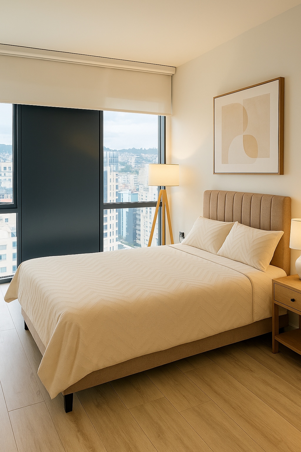 Spectacular suite located just across La Carolina Park. Imagine the view from the 17th floor, whether you're relaxing on the sofa or in bed. Features a fully equipped kitchen, fast internet, and you'll feel right at home. Easy walking access to the Subway, Mall El Jardín, and CCI. Pool - Sauna - Jacuzzi Well-equipped gym Incredible rooftop 60” Smart TV - Netflix Induction cooktop Refrigerator Laundry room inside the apartment Microwave Blackout curtains Clothes iron