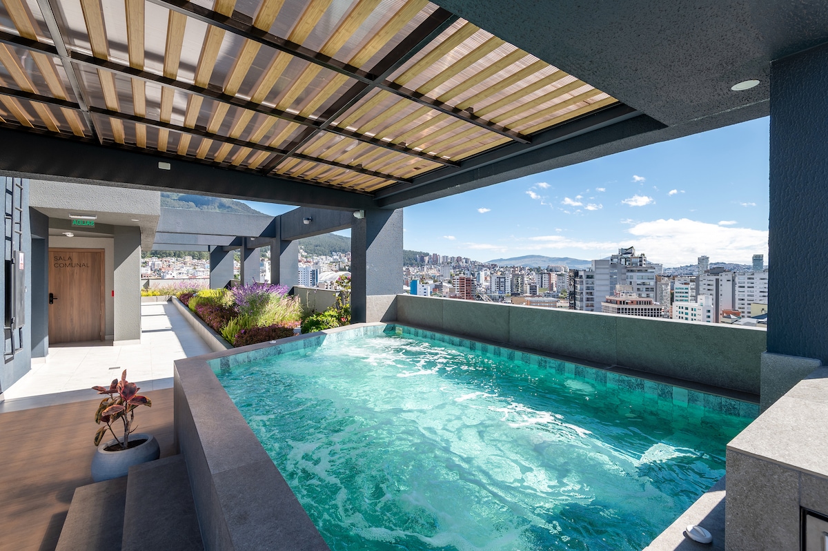 Quito, Ecuador Your booking will be in a quiet and safe environment We are a few steps from Parque de la Carolina, which is very famous in Quito for being close to the financial, commercial and tourist area. It is close to banks, shopping centers, pharmacies, supermarkets and with all services included such as: Wifi Netflix pool sauna, Turkish, Hydromassage gym, business center, lounge bar: pool table, Play area: play station Children's area Terrace with 360 view