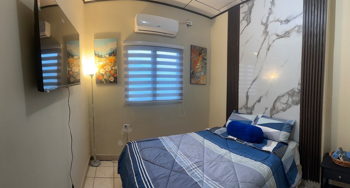 Disfruta de la sencillez del alojamiento tranquilo, cálido y céntrico en la ciudad de La Ceiba. Es un apartamento de una habitación, completamente amueblado, climatizado, cuenta un sofá/ cama, cama Queen, un baño amplio, cocineta equipada, televisor, salita/comedor y balcón con hermosa vista de Pico Bonito y estacionamiento techado, ubicado en la Col. Piñansa, a 5 minutos del centro de la ciudad en vehículo, cerca de Transporte Cristina, Paseo de los Ceibeños, Dirección Marina Mercante, etc.