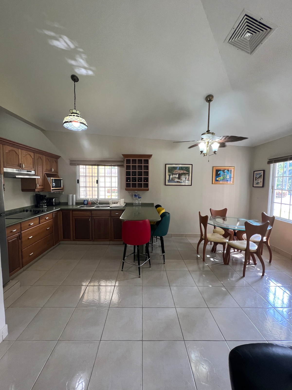 Relájate con toda la familia en este tranquilo lugar para quedarse. Villa ubicada en el complejo Hotel y Villas Palma Real de La Ceiba. Esta hermosa villa te hará descansar y disfrutar de tus vacaciones en un mismo espacio. Puedes hacer uso de las piscinas compartidas del complejo y la pisicna del hotel. Una hermosa playa esta a pocos minutos a pie. Si deseas explorar los alrededores, muy cerca podras encontrar: 1. Laguna de cacao 2. Aguas termales 3. Canopy Tour 4. Viajes a cayos cochinos