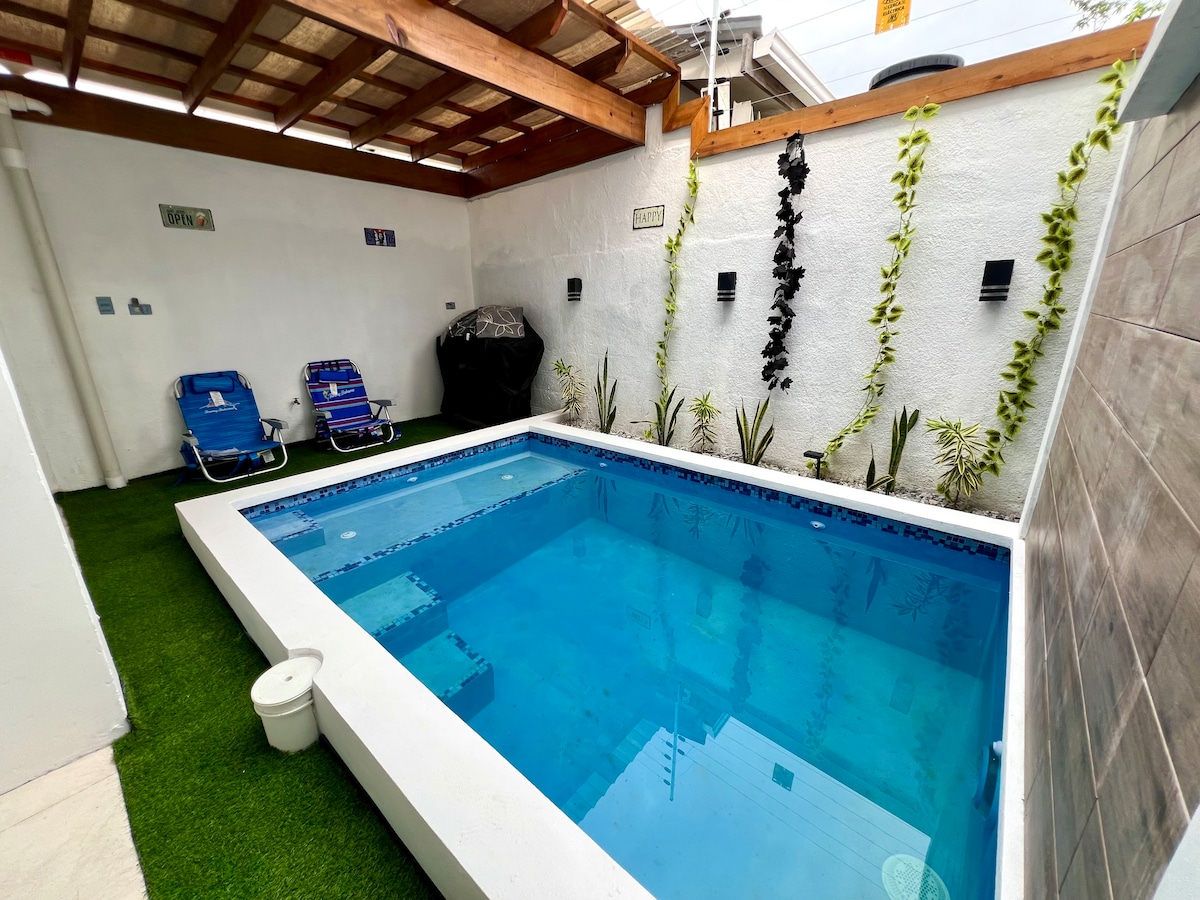 Modern Villa w STARLINK Wi-Fi, perfect for a family of no more then 6 persons (including Babies & Children). No 3rd PARTY BOOKINGS. DO NOT BOOK IF YOU ARE NOT TRAVELLING. NO PETS. NO BICYCLES. Fully gated and secured community. 1 Master Bedroom with Queen Bed. 1 Guest Room with 2 Full Beds, Washer/Dryer, Fully equipped Kitchen with Dining Table/4 Chairs. Shared Pool, right in front of our Villa, and also at the Hotel should you chose to swim there. Outside BBQ Grill