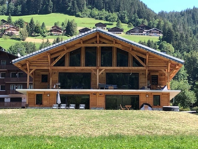 Demi-chalet neuf équipé haut de gamme. Pieds des pistes de ski de fond, à 5min à pied du télécabine la Panthiaz (accès au domaine skiable des Portes du Soleil). 5 mnts en voiture du chatel. 3 mnts en voiture du supermarche. 4 chb avec salle d'eau, WC et terrasse/balcon + 5em chambre avec lits superposés. Douche/lavabo/WC/TV Connectée dans chacune des 4 chambres. Cuisine toute équipée ouverte sur salon avec Poêle à bois, grand écran, vue montagne, terrasses. Haut standing, idéal familles et amis.