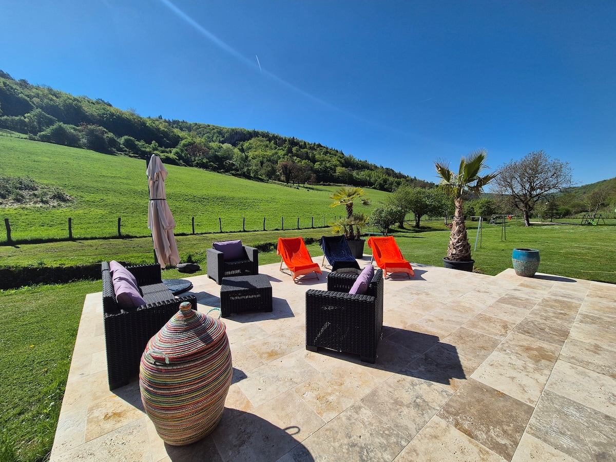 C’est une petite maison oú il fait bon se retrouver, elle apporte du bonheur... Elle est située dans la vallée du Dessoubre, rivière à truite, bon plan pour les pêcheurs et les amoureux de la nature. Dans un cadre de verdure à 360 degrés, le calme y est idéal pour s’y RESSOURCER... La maison surplombe la vallée, sans aucun vis à vis, vous pourrez prendre un bain ou une douche directement sur la terrasse extérieure. (En été) C’est un exemple d’un des vrais petits BONHEURS...
