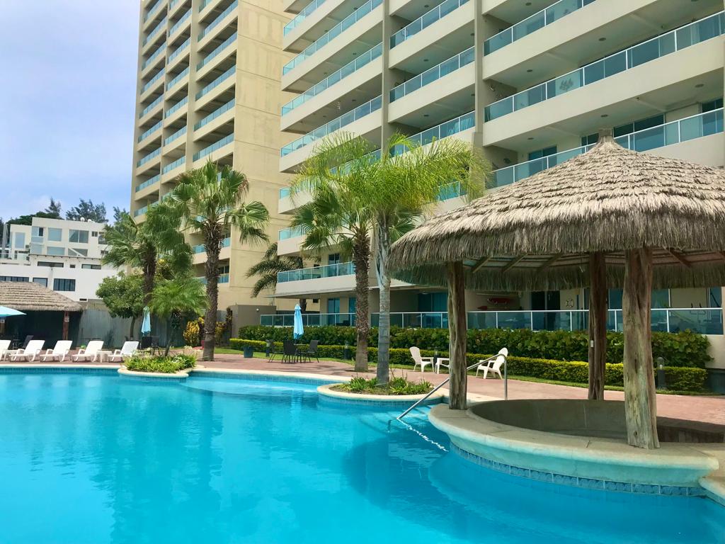 Apartamento ubicado en el Hotel Colon de Salinas. - Cuarto con Smart TV de 75 pulgadas y Netflix - 2 baños con ducha - Balcón con vista directa al mar - Sala - Cocina - Café y cafetera - Parqueo privado - Seguridad 24 horas - 3 piscinas - Justo al comienzo de El Malecón - Servicio de hotel (Restaurante, spa, gimnasio, room service). Estos servicios son independientes del apartamento. *Solo se permiten 2 huéspedes por noche* *Por favor tener cuidado con la hamaca*