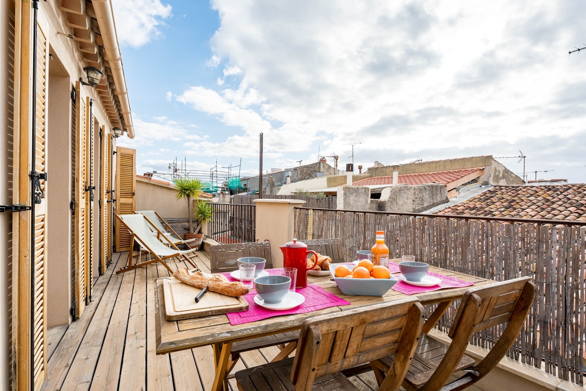 Ce loft climatisé de 40m2 à la décoration originale version cabane profite d une situation exceptionnelle pour du centre ville . L entrée de l immeuble ce fait par la rue principale marchande de la Ciotat mais il donne sur la rue parallèle située au calme avec une vue sur les toits . Situé plein Est vous pourrez profiter d un balcon filant de 6 mètres pour prendre le petit déjeuner au soleil ou lire un livre dans la chaise longue .Parking sécurisé à 150m inclus. Un havre de paix en ville !