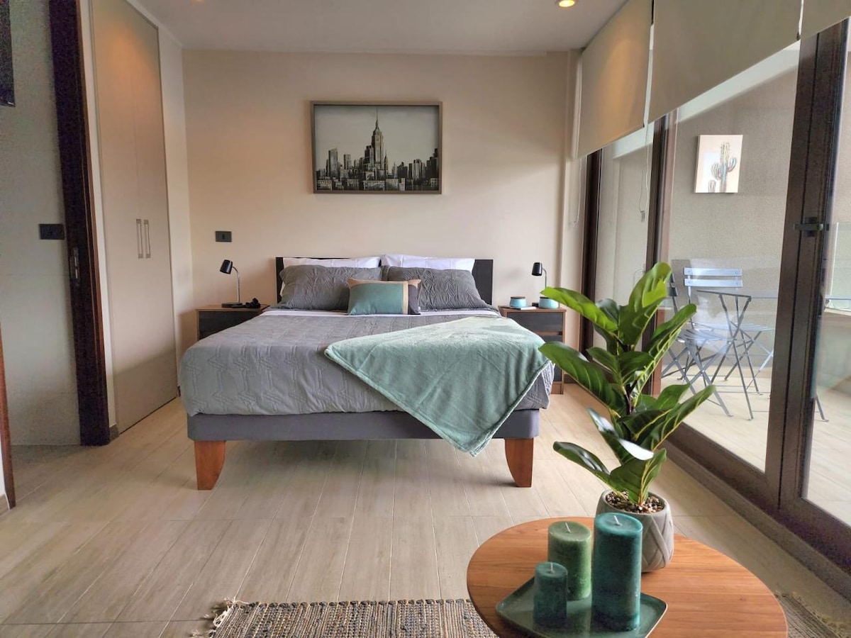 🏡 Departamento de 1 a 3 personas 📅 Estadías cortas o largas ❄️Aire acondicionado y calefacción tipo split 👩🍳 Cocina full equipada, 100% eléctrica 🚿 Baño en suite con agua caliente y tina 🧺 Incluye lavadora-secadora en el departamento 💻 Internet de fibra óptica, para ocio y trabajo 🔑 Acceso autónomo, sin contacto presencial 🕒 Conserjería 24 horas 🚇 A 12 min caminando del metro Departamental y Ciudad del Niño 🛒 A pasos de San Miguel, supermercados, farmacias y hospitales