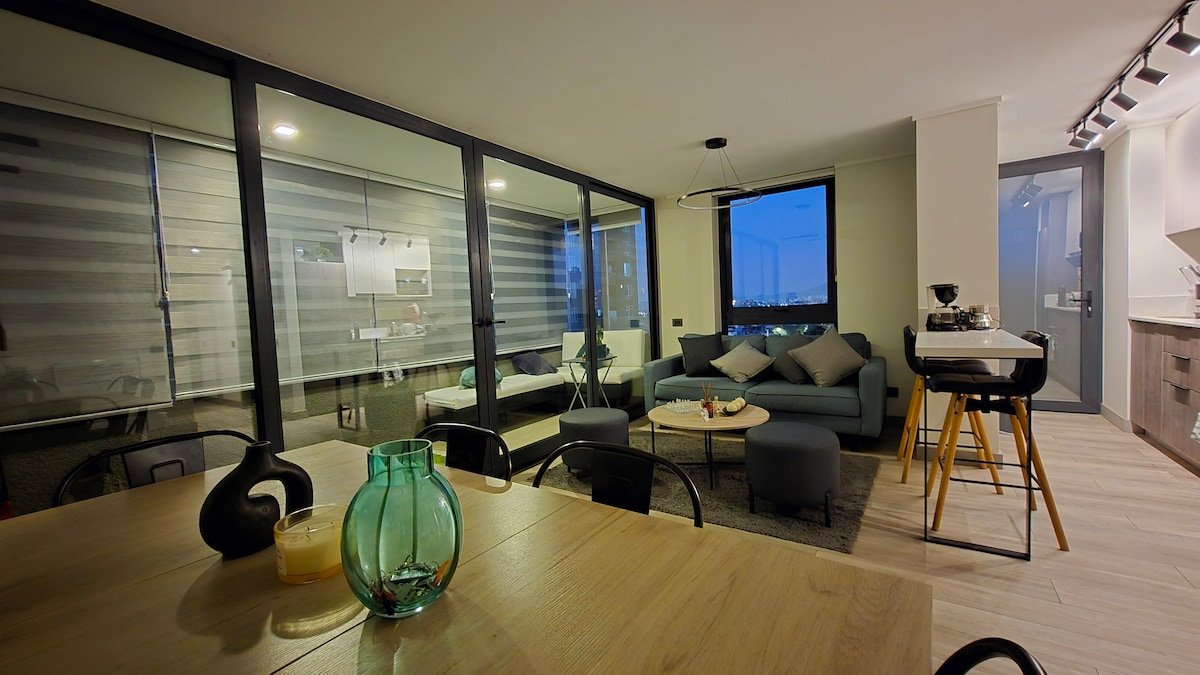 ✨ Depto con vista hermosa y abierta a la Cordillera, en sector seguro, silencioso y totalmente privado. Un refugio perfecto para descansar profundo o trabajar con foco real. Disfruta Piscina disponible en temporada, WiFi rápido, iluminación cálida y una ubicación estratégica cerca de todo, sin ruido. Confort, orden y lujo discreto en cada detalle.