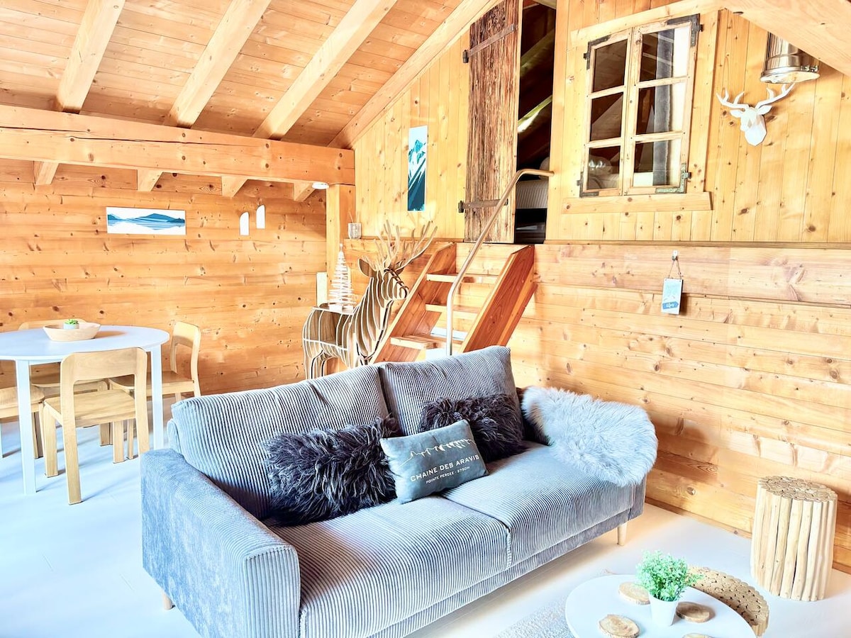 Unique Tiny house - Preserved area Authentic 18th century Savoyard attic renovated into charming accommodation. Calm, well-being and great comfort in a preserved environment of pastures and forest. Panoramic view of the Aravis mountains (5 km from La Clusaz and Grand Bornand resorts). 2 km from the center of the village (all shops & services available). Ideally located between Lake (Annecy / Léman) and mountains, you will appreciate the tranquility and the beauty of the mountain landscapes.