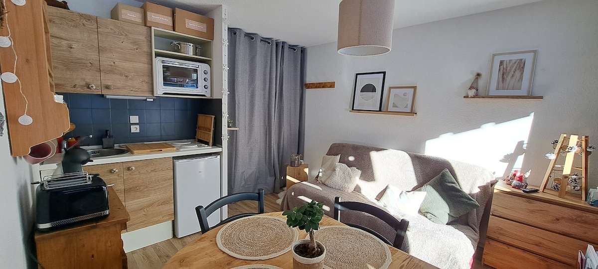 Location d’un studio au centre de la Clusaz de 15m2. Pour 2,3 personnes (1 couple 1 enfant). Belle terrasse de 9m2 carré avec vue sur les pistes. Place de parking couverte. Appartement en rez de chaussée . Situé à 150m de toute commodité ( remontées mécanique, restaurant, bowling ,piscine avec toboggan ,boîte de nuit ,cinéma,luge d’été …) Entièrement rénové. Résidence avec gardien .