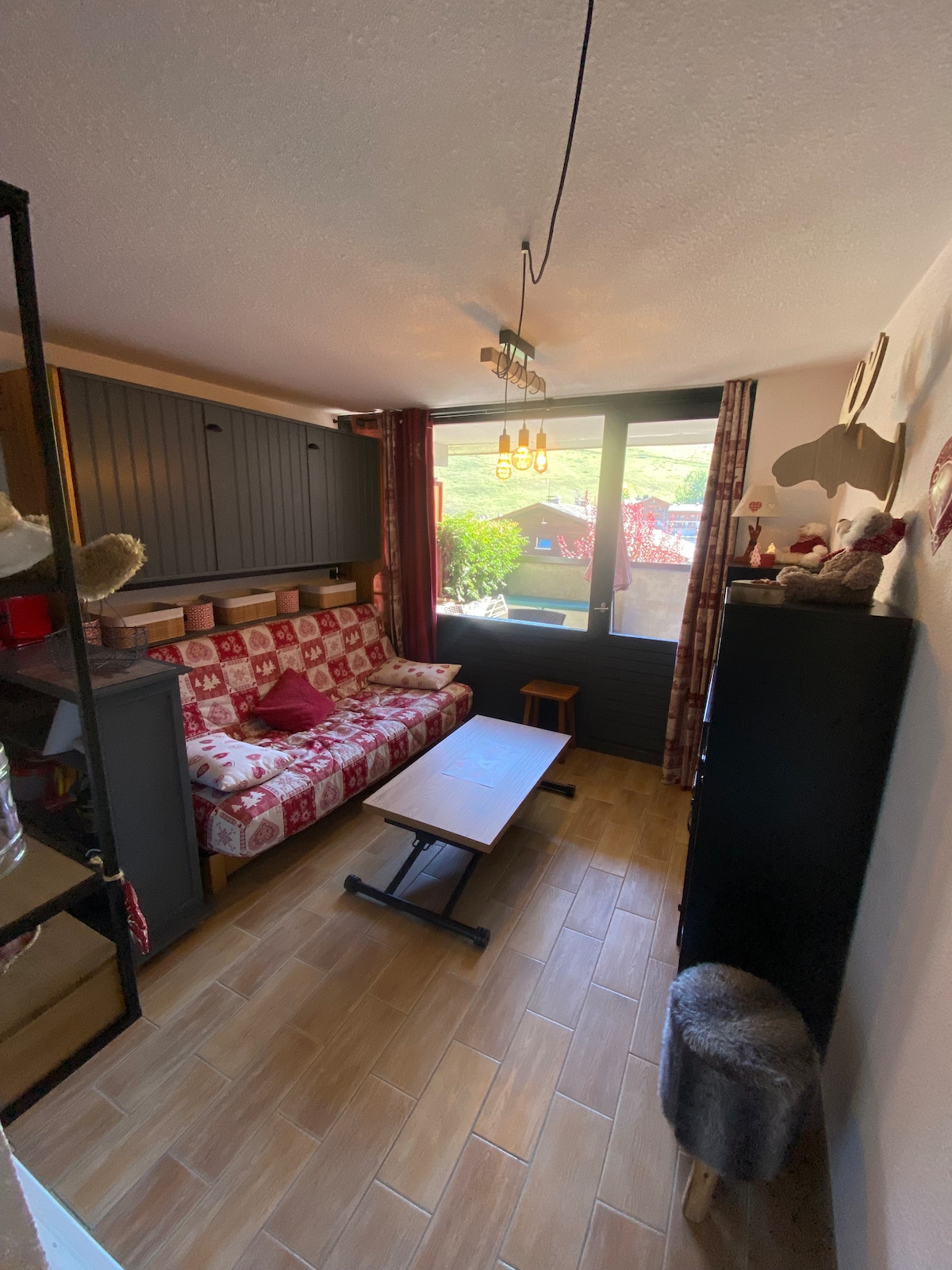 Très agréable 2 pièces pour 4 personnes balcon orienté Est (vue imprenable sur la montagne), ensoleillé toute la journée. Cet appartement classé 2* dispose de tout le nécessaire dont vous aurez besoin pendant votre séjour. A 2 minutes à pieds du téléphérique des Prodains et 7 minutes du centre de la station. A 100 mètres de la galerie marchande. Départ et retour skis aux pieds assuré. Appartement de 26m carré fonctionnel, tout équipé.