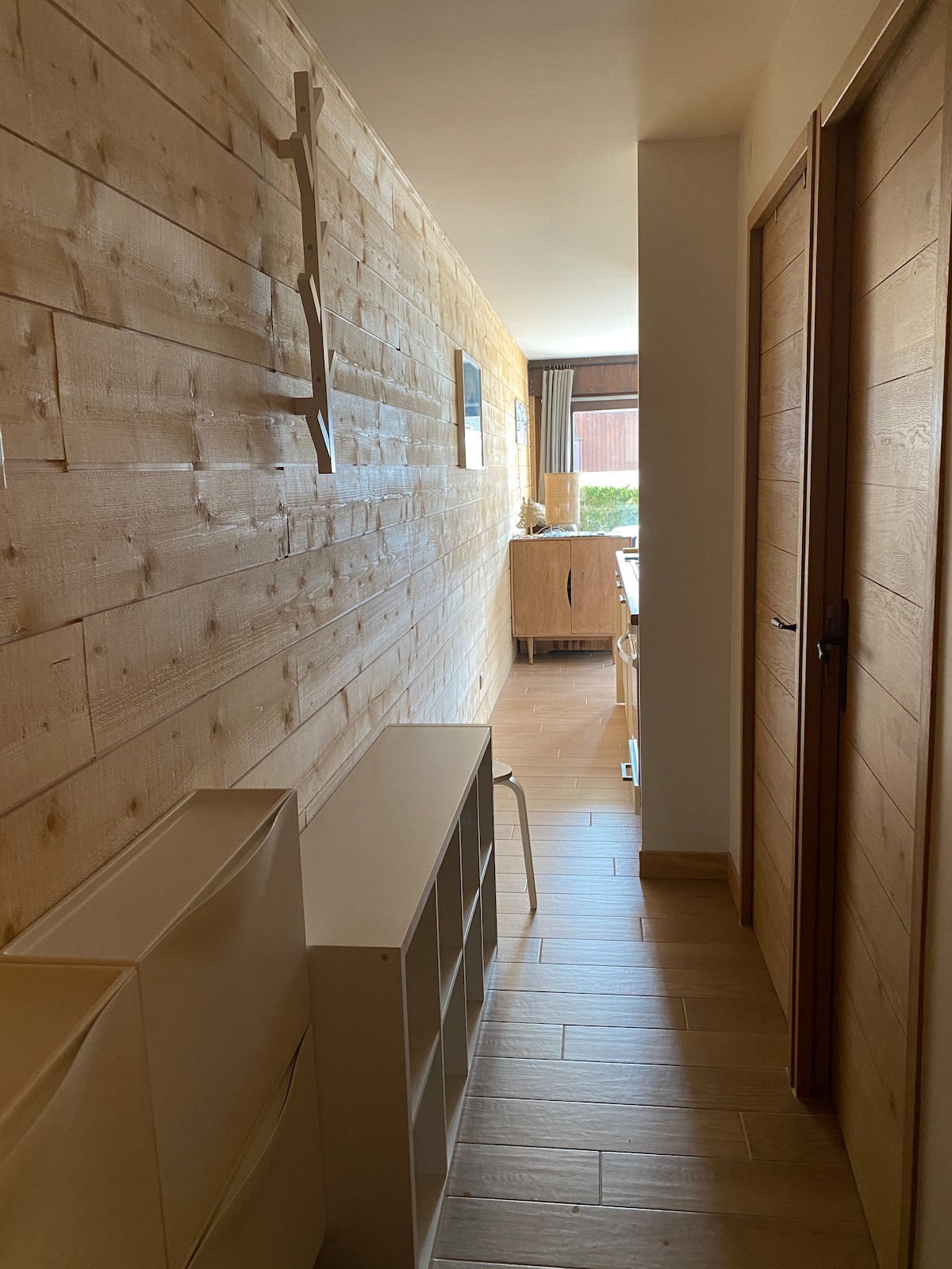 Appartement rénové tout confort alliant esprit montagne et modernité, idéalement situé à 150 m de la piste des Riffroids et à proximité immédiate du village et des commerces. Petite résidence calme dans un secteur privilégié de la station avec l’atout d’avoir un Parking privatif extérieur. Vue dégagée sur les montagnes et les pistes de skis. Espace extérieur avec balcon plein Sud.