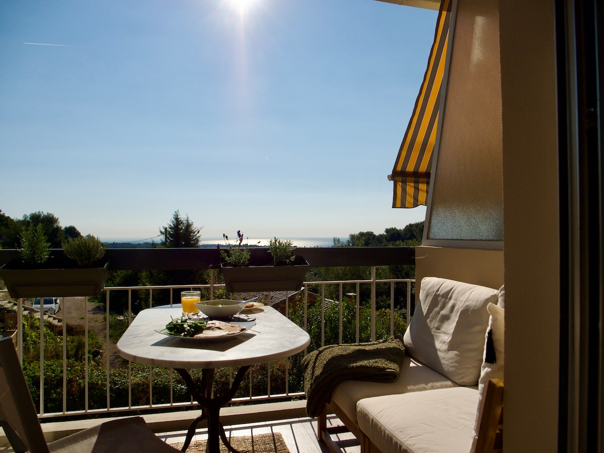 海景、阳光明媚的阳台和宁静的住宿体验,位于Vence