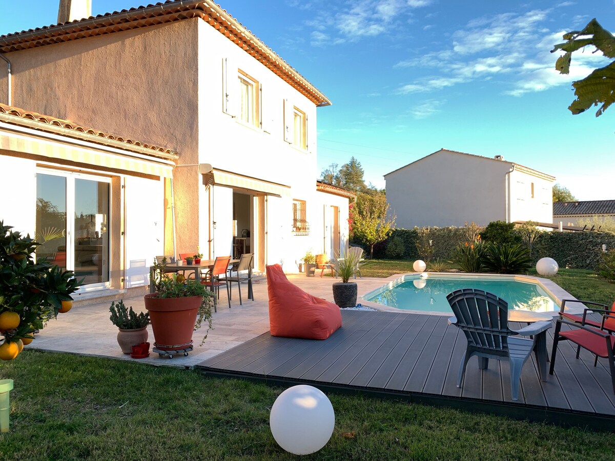 Very close to the historical village of St Paul, ideally located 7 minutes from Polygone Riviera (large shopping center), 20 minutes from Nice airport, a nice modern house, set on 1200 m2 of land with a heated swimming pool ( may to sept) . Terrace of 100 m2 with pergola and outdoor kitchen (Plancha). Many activities possible with families. Very nice discoveries with the neighboring villages.