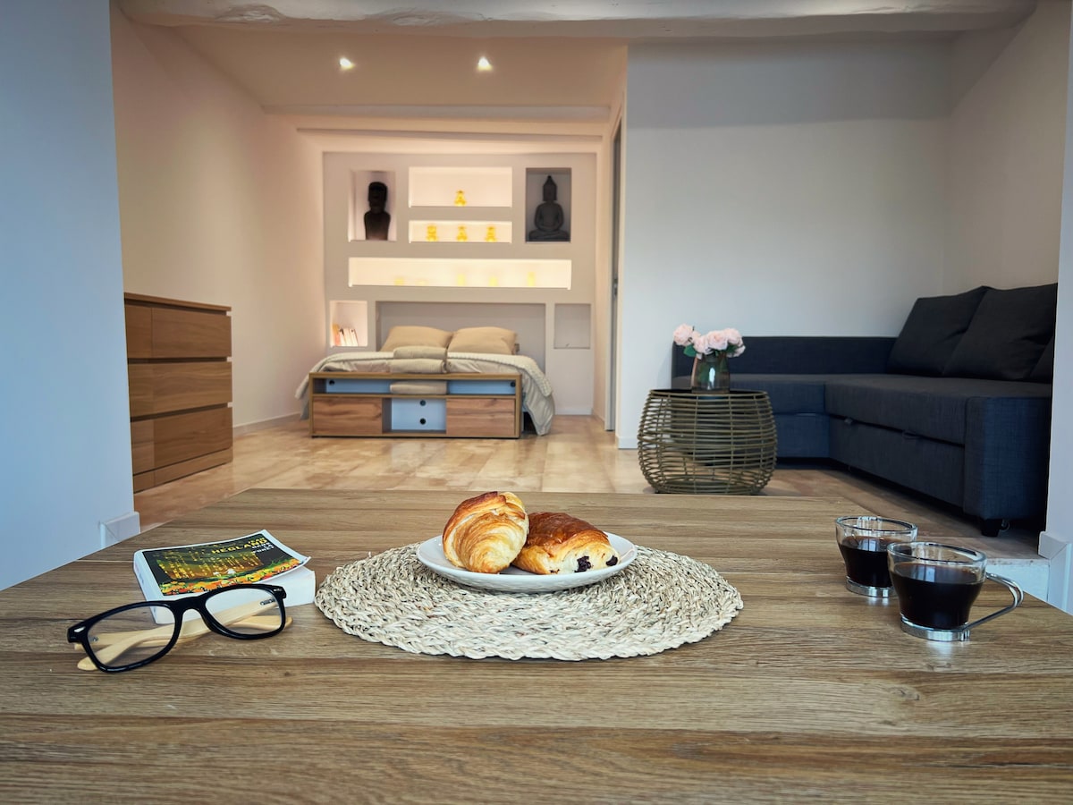 Agréable studio villa climatisé en rez de jardin avec entrée et jardin indépendant d'environ 50m². Cuisine entièrement équipée ( plaque de cuisson, four, réfrigérateur, four à micro ondes). Tout confort salle de bain avec douche facilement accessible et lave linge. Accès wifi fibré, télévision tnt, netflix, une place de parking privative et parking communale à proximité.