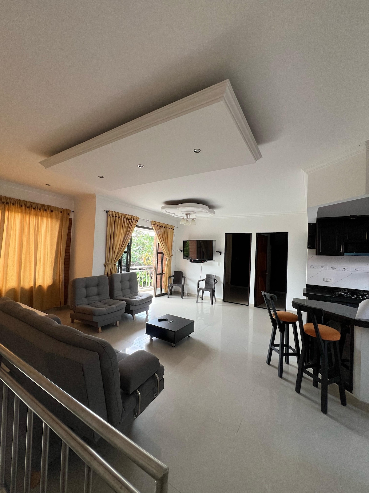 Acogedor apartamento en un segundo piso, tiene: sala, cocina con barra, dos baños, y dos habitaciones, se encuentra ubicado a tan solo dos minutos del parque central del municipio, es ideal para disfrutar de las amenidades del pueblo y su maravilloso clima. WiFi, Televisión por cable, Parqueadero cubierto.
