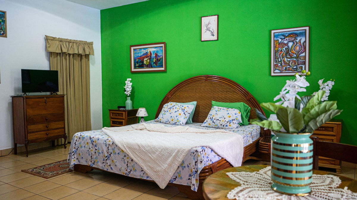 CASA ANDARES is a charming home located in a safe, family-friendly area of Managua, offering 24/7 security and gated access. It includes: ▪︎ 1 bedroom with a full bed, room darkening shades, & A/C. ▪︎ 1 bedroom w/ 2 single beds, room darkening shades & ceiling fan. ▪︎ A fully equipped bathroom, and a laundry room. ▪︎ The kitchen features appliances and cookware. Guests can relax on the outdoor terrace and enjoy the greenery of the enclosed private patio, making it a perfect spot to relax.