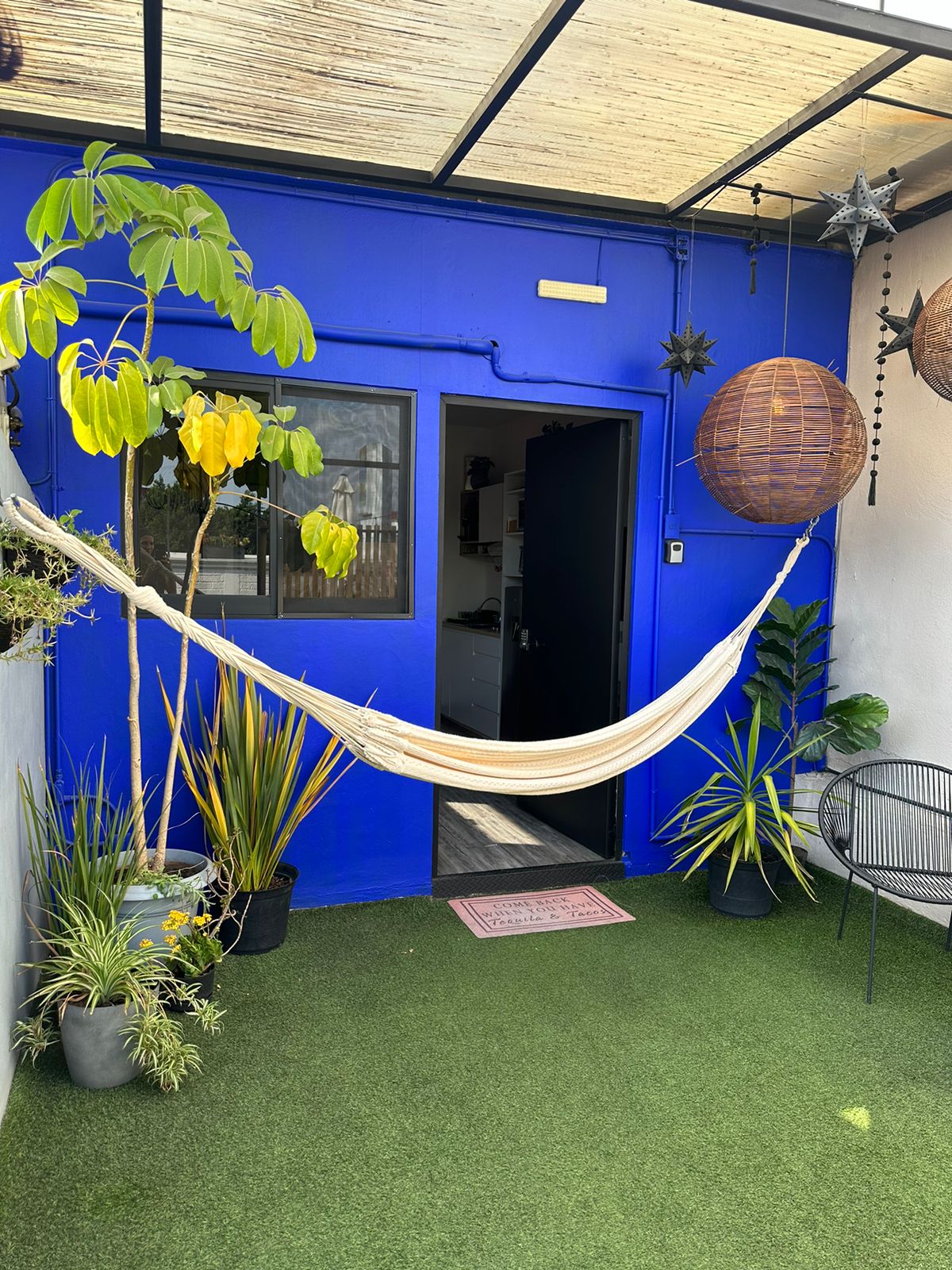 This space is the perfect spot for artistic digital nomads. What does it come with? - WIFI 150 Mbps. - Air conditioner - Ceiling & standing fan - LG 50" 4k Ultra HD Smart TV / Netflix account - Fully equipped kitchen - Filtered water - Nespresso Machine & Aeroccino + French Press - Comfy bed (Quality linens) - Blackout curtains - Safe Box - 100 square feet Private patio with hammock, table and chairs - Luggage drop-off (Upon request) - Good Vibes!