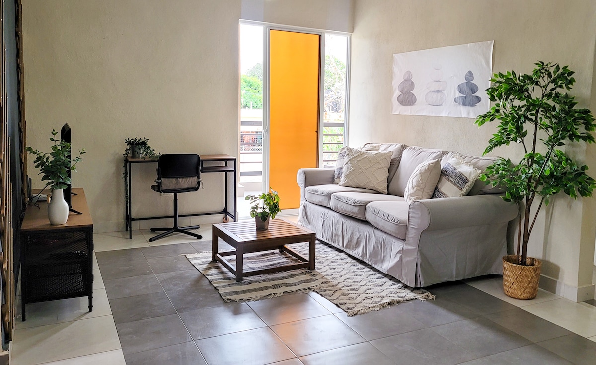 Very spacious apartment located in a modern luxury building in a safe area. Only 10 minutes’ walk to the center of Jarabacoa and bus terminal of Caribe Tours. Fully equipped kitchen. 3 double bedrooms + 2 complete bathrooms + 1 single WC+ Giant living room & kitchen. Luxury details in a unique style decoration. The apartment is in the 3rd floor with a nice view to a private park with old tropical trees. There are also nice restaurants nearby. AC are in three bedrooms.
