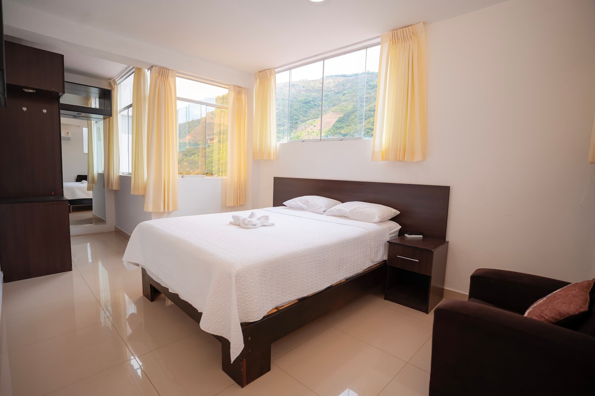 Habitación con 3 camas, termo ventilador, baño privado, secadora de cabello, caja de seguridad, televisión satelital, wifi.